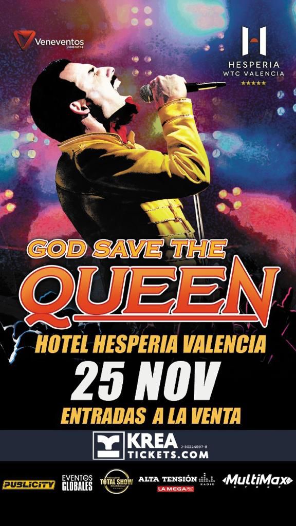El público carabobeño podrá disfrutar del mejor tributo a Queen, según la revista Rolling Stone. “Dios Salve a la Reina” llega a Valencia el próximo 25 de noviembre en una única función.