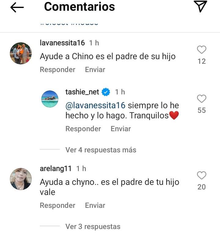 Natasha recibió mensajes como «Ayuda a chyno es el padre de tu hijo vale», «Amiga entiendo el dolor de vivir una infidelidad, pero no lo dejes solo, es el padre de tu hijo, recuerda lo bonito, no se trata de volver, se trata de humanidad».