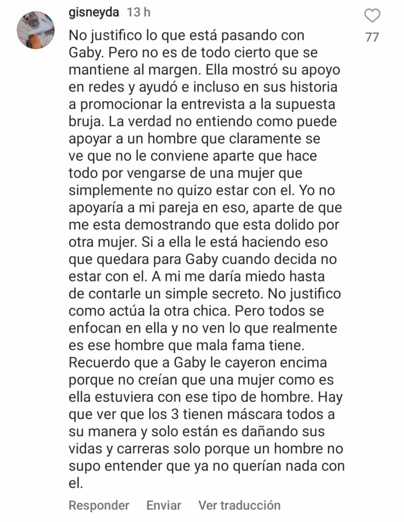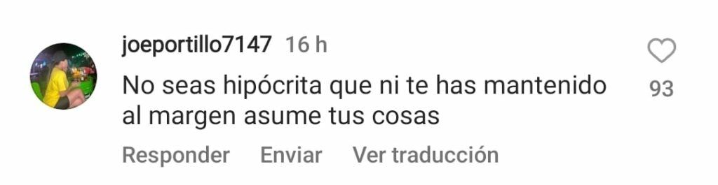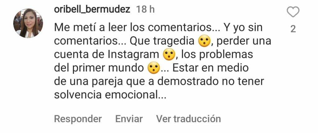 Ante sus recientes declaraciones, en las cuales Gaby Espino indicó que le querían cerrar su cuenta de Instagram, muchos de los usuarios que hacen vida en esta red le hicieron comentarios muy críticos por el papel que está tomando en esta polémica.