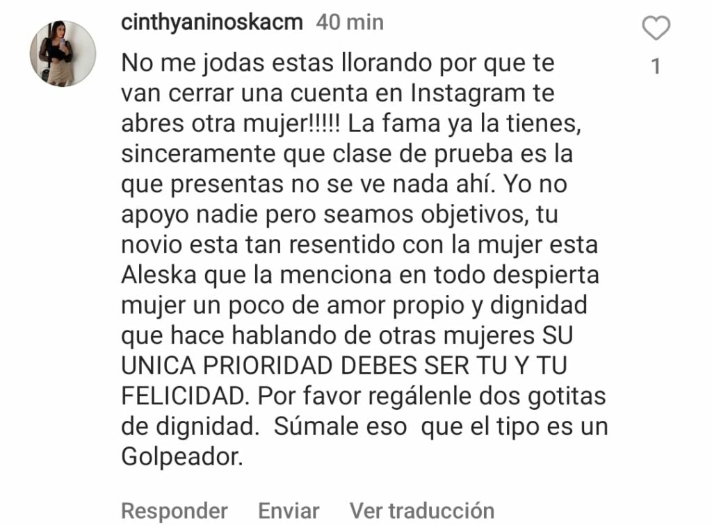 Seguidores de la actriz, le señalaron que está muy mal hacerle el juego a un maltratador, como lo es Miguel Mawad. Además la criticaron fuertemente por guardar silencio ante los vídeos en donde se ve a quien se dice es su pareja actual, maltratar a Aleska Génesis.