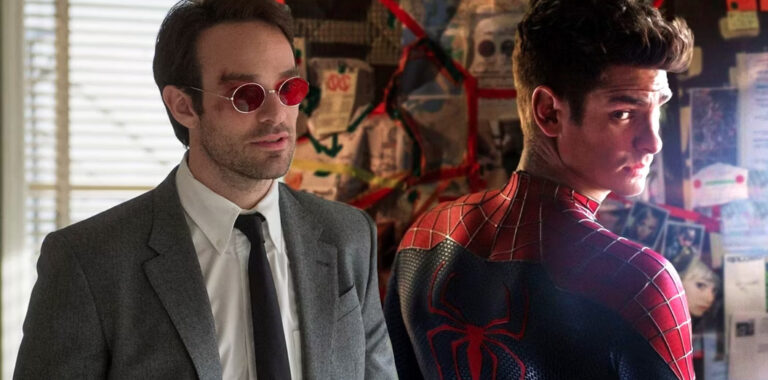 Andrew Garfield reacciona ante Charlie Cox, de Daredevil, que se burla de su encarnación de Spider-Man. Aunque el superhéroe de Marvel ha sido interpretado por muchos actores en películas, programas de televisión e incluso musicales, hay tres actores cuyas apariciones cinematográficas les han convertido en las representaciones más visibles de Spider-Man. Tobey Maguire fue el primero de ellos, protagonizando tres películas del Hombre Araña dirigidas por Sam Raimi entre 2002 y 2007. Garfield interpretó el papel en la reiniciada franquicia Spider-Man de Marc Webb de 2012 a 2014. Más recientemente, Tom Holland introdujo a Spider-Man en el Universo Cinematográfico Marvel. Su última película, Spider-Man: No Way Home (2021), vio al Peter Parker de Holland encontrarse con las versiones de Spider-Man de Maguire y Garfield, uniendo las tres franquicias en el MCU.