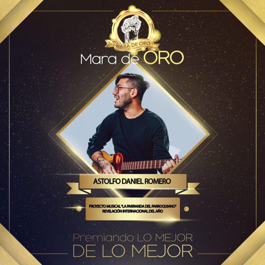 En el marco de su misión de enaltecer los valores culturales de Venezuela, la Fundación Mara de Oro otorgó el prestigioso galardón «Proyecto Revelación Internacional del Año» a Astolfo Daniel por su innovador proyecto musical «La Parranda del Parroquiano». Este reconocimiento se da en vísperas del 70 aniversario de la fundación, que desde 1955 destaca lo mejor del talento nacional e internacional.