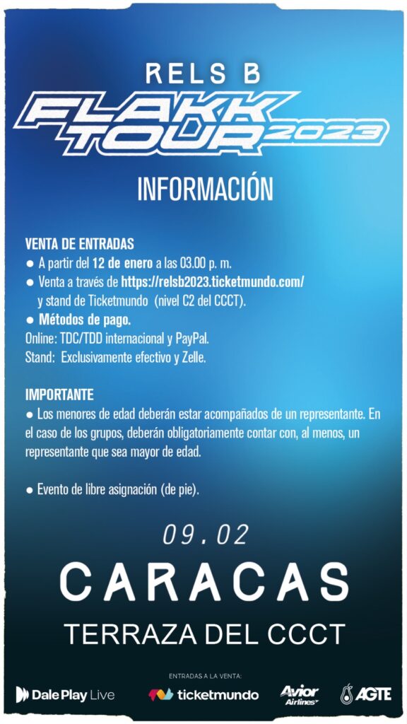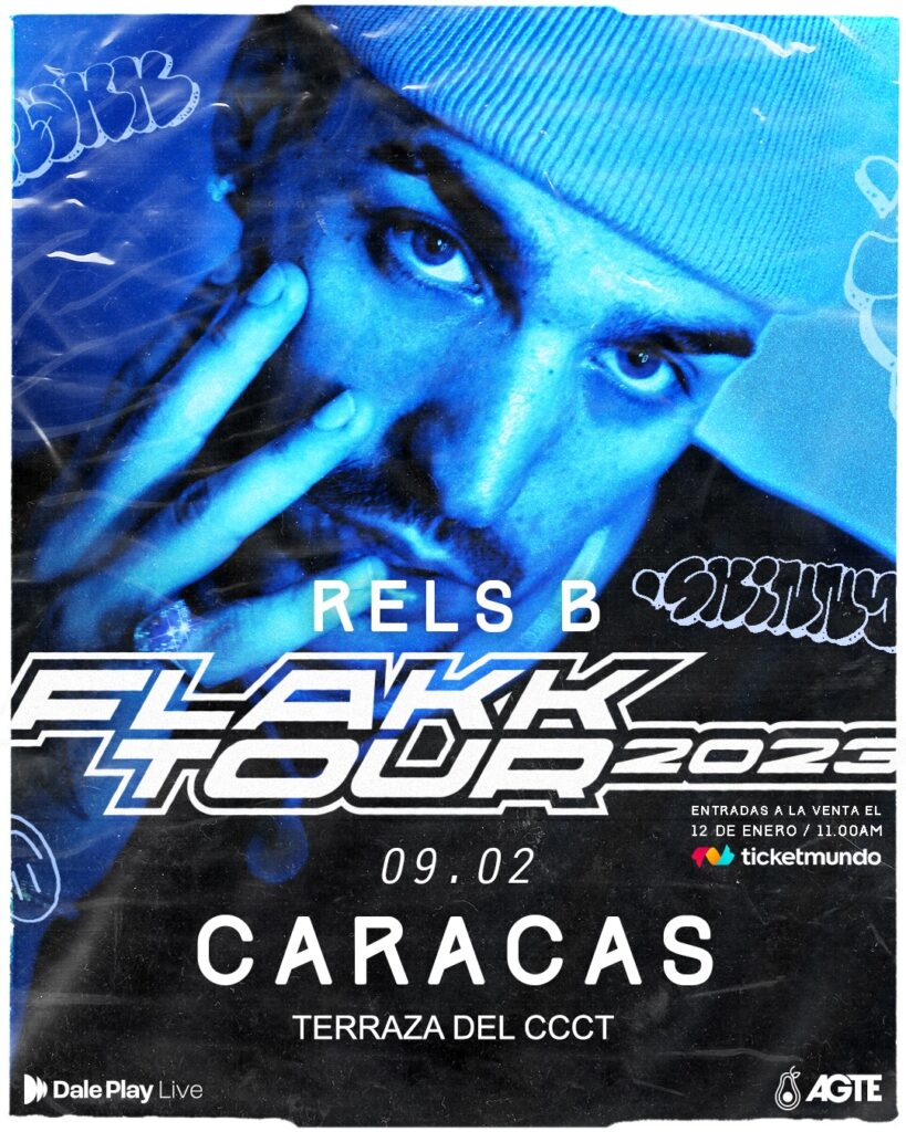 El rapero Rels B (@skinnyflakk) anuncia concierto en Caracas el próximo 09 de febrero como parte de su “Flakk Tour 2023” y con él se inicia la temporada de conciertos en suelo venezolano.