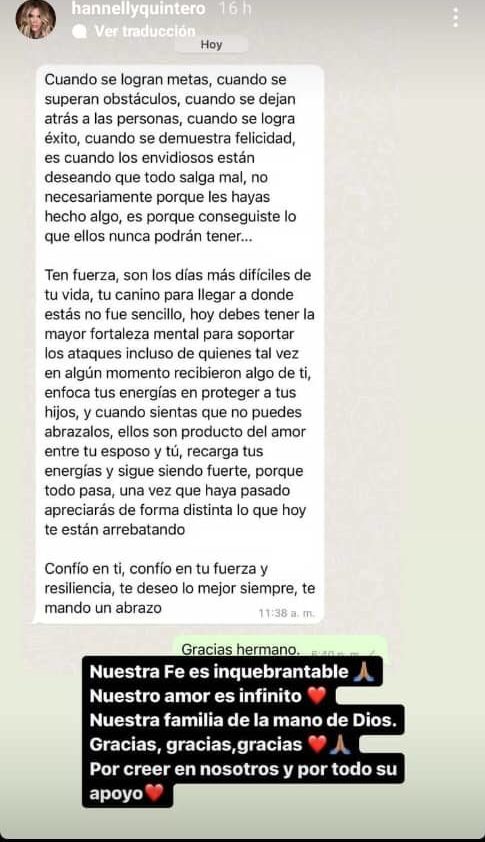 «Nuestra fe es inquebrantable. Nuestro amor es infinito. Nuestra familia de la mano de Dios. Gracias por creer en nosotros y su apoyo», dijo la modelo.