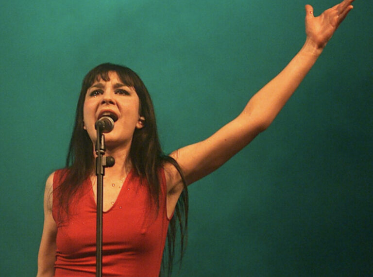 Eva Amaral, cantante del dúo español Amaral, junto al guitarrista Juan Aguirre, dijo desnudó su pecho al son de la canción Revolución para dar un mensaje político.