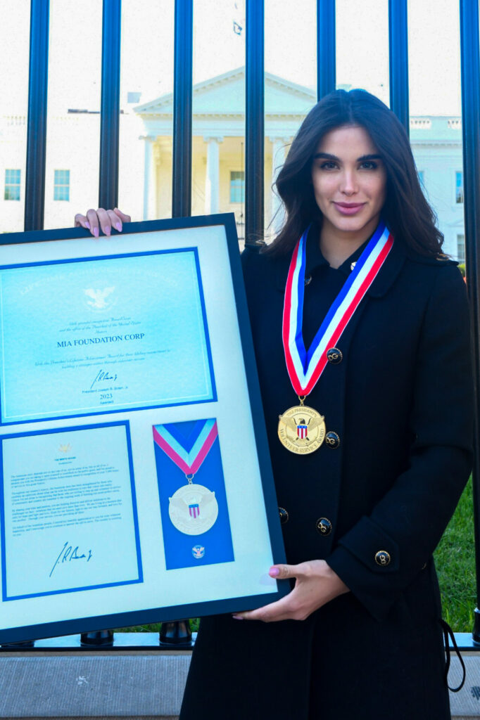 Este reconocimiento concedido por el Presidente de los Estados Unidos, Joe Biden, se le otorgó a la corporación Mia Foundation, mediante la cual, su fundadora, MichellRoxana ha ayudado a proteger y enseñar a los niños más desfavorecidos en diferentes regiones del mundo. Además Michell es la creadora de la saga de libros “MicheLand”, los cuales llevan un mensaje fundamental para el cuidado del medio ambiente ayudando de esta manera sembrar la semilla de la protección de nuestro planeta a las personas que disfruten de su lectura.