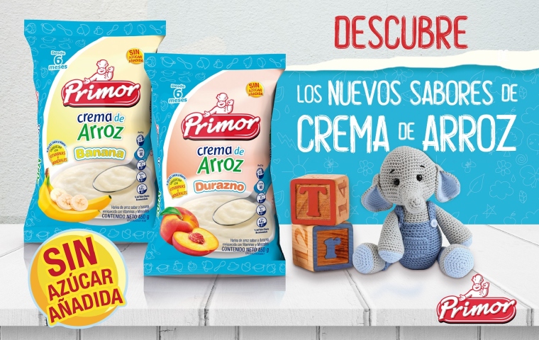 Las Cremas de Arroz Saborizadas de Banana y Durazno son las nuevas propuestas que ofrece la marca Primor para los consumidores venezolanos. Las dos presentaciones en bolsas de 450 gramos son opciones de excelente calidad para preparar atoles, papillas y merengadas.
