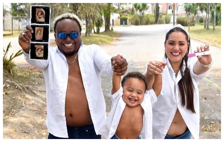 El humorista venezolano reveló la noticia con unas fotografías en compañía de su esposa, Andrea Salazar y de su primer hijo, Clemente, quien tenía en sus manos la prueba positiva de embarazo que se realizó su mamá.