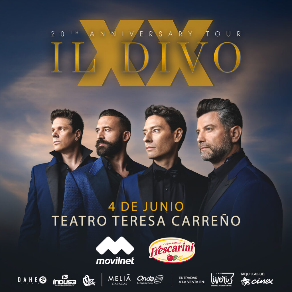 Il Divo regresa a Venezuela después de dos años de su último concierto en Caracas, que quedó grabado en la mente y los corazones de los asistentes. En este 2024, la agrupación promete seguir deslumbrando con su sonido original ahora aplicado a grandes éxitos de la música, como “I Have Nothing” de Whitney Houston; “Always On My Mind” de Brenda Lee y Elvis Presley; “Perfect” de Ed Sheeran y “Despacito” de Luis Fonsi, Daddy Yankee, canciones incluidas en su nuevo trabajo “XX: 20th ANNIVERSARY ALBUM”.