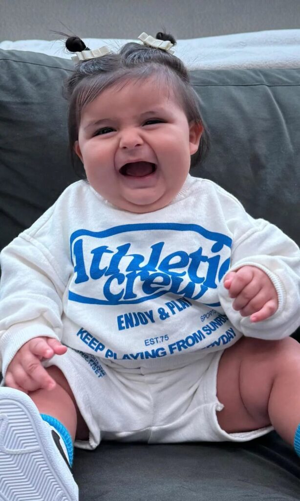 Cazzu compartió un breve clip en el que su bebé lanza una carcajada contagiosa. Junto al video, escribió el número 7 acompañado de un corazón azul que combinaba con las letras de su buzo. Fue un gesto encantador que reflejaba el amor y la felicidad que siente por su pequeña en cada momento.