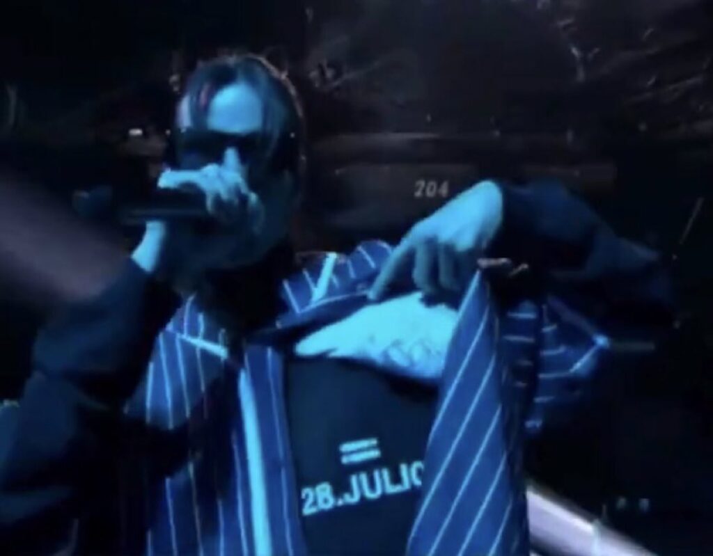 Mientras interpretaba su nuevo sencillo “Cero condiciones”, el cantante se abrió la camiseta para mostrar la franela que tenía debajo, en la que se leía la fecha “28 de julio” con un signo de igual (=).
