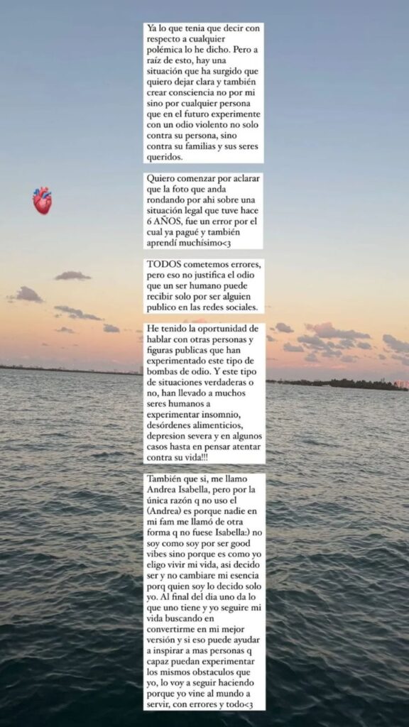 A su vez, la influencer confesó que la situación la ha llevado a experimentar insomnio, desórdenes alimenticios, depresión severa, entre otros problemas, por lo que invitó a todas las personas que lanzan odio en las redes sociales a reflexionar sobre las graves consecuencias que trae consigo para quienes experimentan estar en el ojo del huracán.