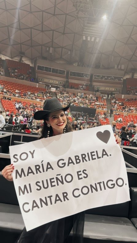 Silva decidió llevarse una pancarta que la ayudara a llamar la atención de Natalia y así fue. «Soy María Gabriela. Mi sueño es cantar contigo», se leía en el cartel.