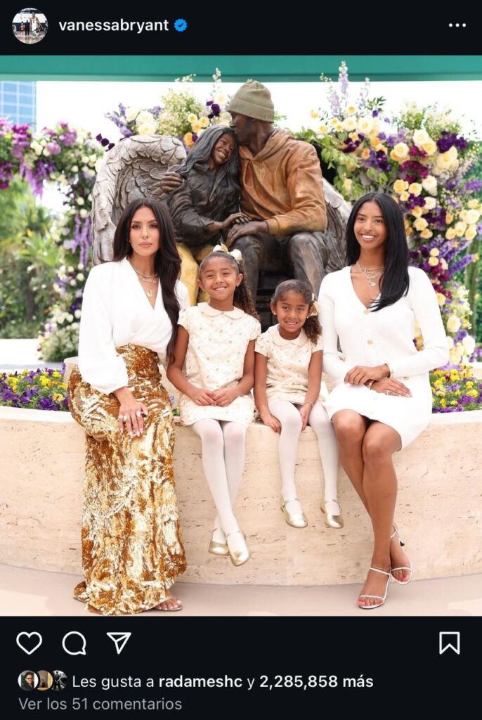 Por su parte, Vanessa Bryant, viuda de Kobe, compartió en Instagram una foto de ella sentada junto a la estatua con el mensaje “Kobe & Gigi”. En la base de la estatua, una placa incluye una frase de Kobe que resuena con su legado: “Gianna es una bestia. Es mejor de lo que yo era a su edad. Lo tiene todo. Las niñas son increíbles. Tendría cinco niñas más si pudiera. Soy un papá de niñas”.
