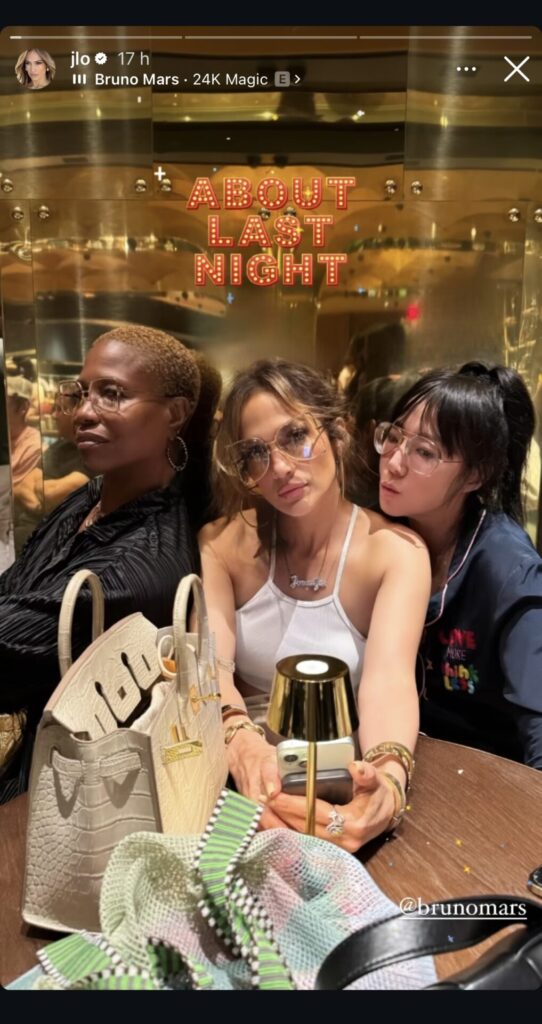 Además de disfrutar del concierto, JLo compartió algunos momentos con amigas en las redes sociales. En sus historias de Instagram, publicó fotografías de la velada, dejando en claro que se trata de una noche de diversión entre amigas.