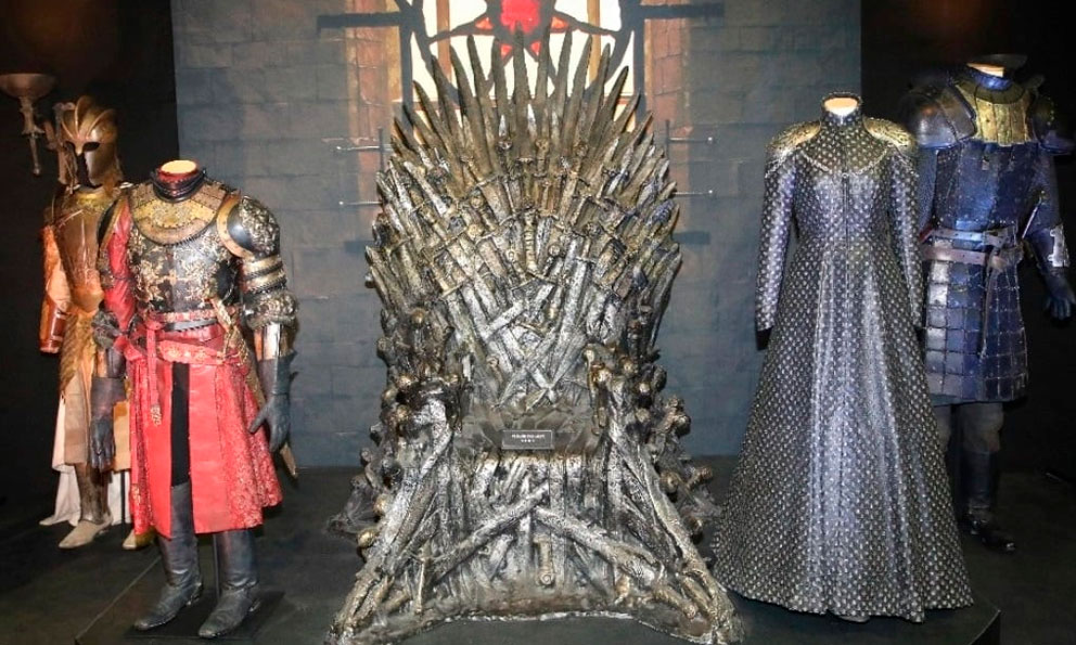 También figura el imponente abrigo blanco de piel que vistió Daenerys Targaryen (Emilia Clarke), así como joyas y otros accesorios diseñados por la galardonada Michele Clapton, junto con armaduras y cascos fabricados por Tommy Dunne.