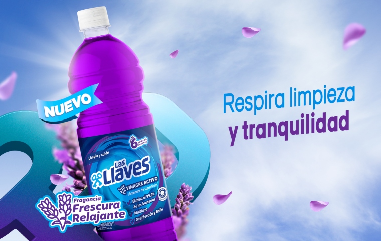 Las Llaves presenta su nueva fragancia de limpiador, Frescura Relajante, manteniendo el mayor atributo del producto, ser la única propuesta con vinagre activo en el mercado venezolano, sumando ahora un rico aroma a lavanda que nos evoca tranquilidad, bienestar y frescura al mismo tiempo.