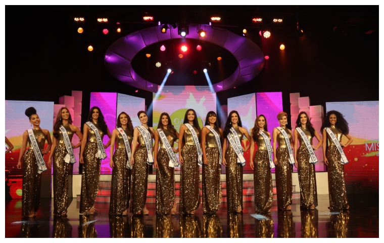 La producción multiplataforma de Venevisión se inspiró en la majestuosidad de los atardeceres venezolanos, recreando la paleta cromática que caracteriza los paisajes de los llanos, el desierto y la Guajira venezolana. La reconocida diseñadora Marianggy Giménez imprimió su sello con una propuesta moderna y sofisticada, donde el dorado y los destellos protagonizaron el concepto visual del show durante el primer desfile en traje de baño de las candidatas.