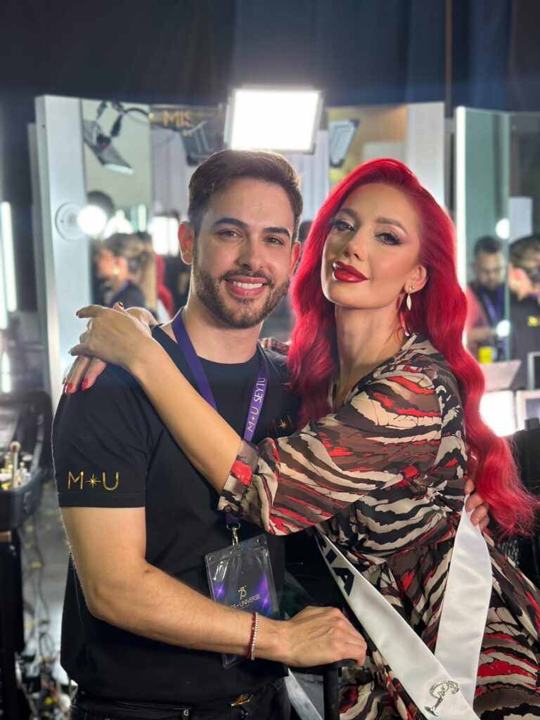 El venezolano Miguel Crespo se destacó, una vez más, en el emocionante Miss Universo, como un referente en el mundo de la belleza. Este año, el experto en maquillaje tuvo el honor de maquillar a 30 competidoras de diversas naciones, lo cual lo hace consolidarse entre los más destacados estilistas del país sin perder la esencia de su tierra en un escenario global.