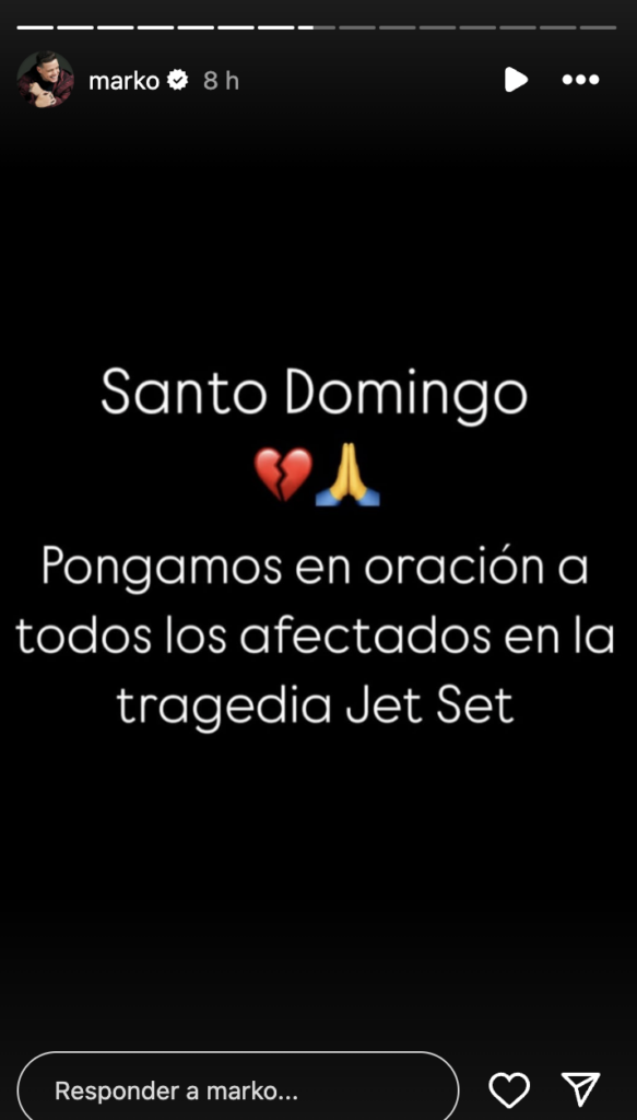 Emilio Estefan y su familia se unieron a las condolencias, asegurando que están unidos a la República Dominicana en este momento de dolor: «Todos unidos a la República Dominicana en este momento de dolor. Compartimos la tristeza de un gran país que queremos tanto. Nuestras oraciones están con todas las familias afectadas».
