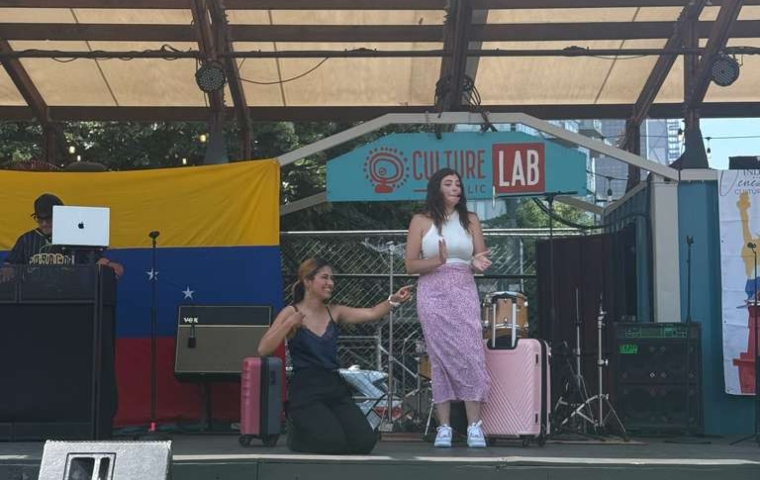 El pasado 5 de julio, el Venezuelan Cultural Fest se convirtió en escenario de una de las propuestas teatrales más emotivas y originales del evento. En las instalaciones del Culture Lab LIC de Nueva York, las actrices Grace Trocell y Amelia Rodríguez presentaron la obra “De Caracas a Nueva York”, una pieza construida en tiempo real, donde la nostalgia, la improvisación y la complicidad con el público dieron vida a una función tan única como memorable. A ellas se sumó, como invitado especial, Jhonatan Zapata, completando un trío que supo captar la atención de todos los presentes desde el primer momento.