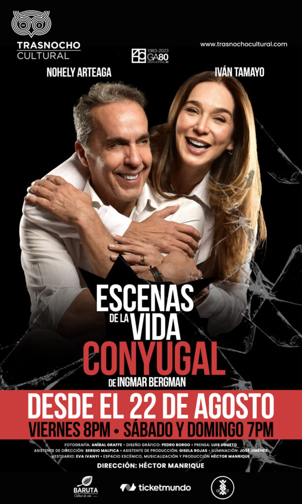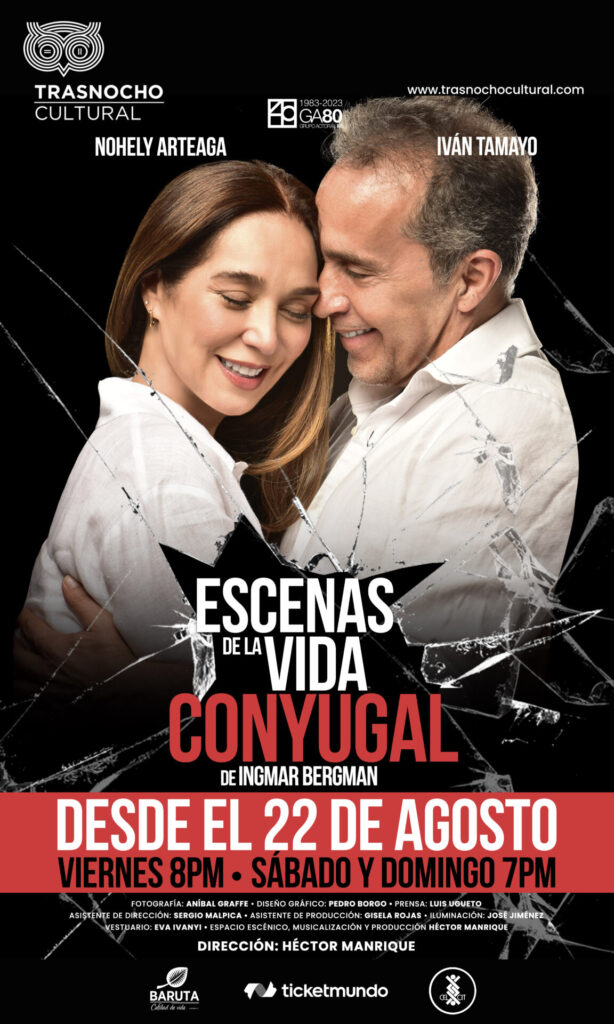 Después de conquistar los escenarios internacionales en España, Argentina, Perú, Chile y Uruguay, la aclamada obra de Ingmar Bergman, Escenas de la vida conyugal, llega por fin a Venezuela. Protagonizada por Nohely Arteaga e Iván Tamayo y dirigida por Héctor Manrique, esta comedia dramática atraviesa las complejidades del matrimonio y las relaciones de pareja con frescura, profundidad y humor.