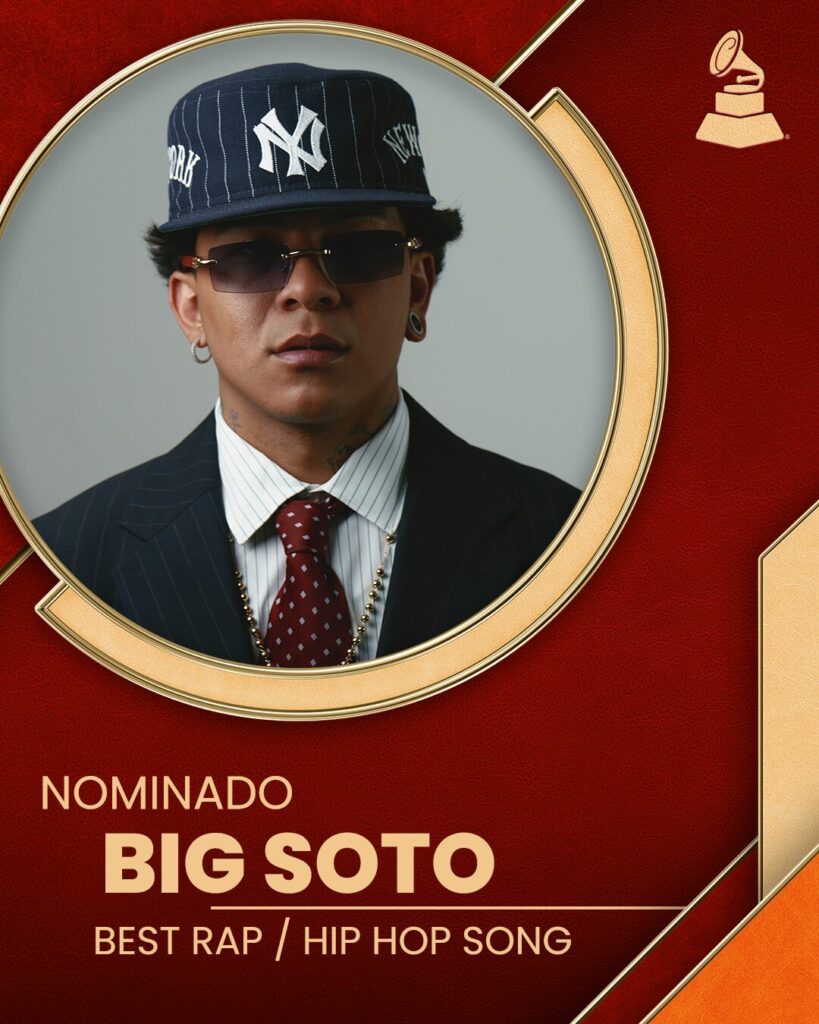 El cantante venezolano Big Soto celebra su nominación a los Latin Grammys en la categoría Mejor Canción de Rap/Hip Hop por «El Favorito de Mami» junto al rapero y compositor estadounidense Eladio Carrión, el focus track de su más reciente álbum «Sotorius».