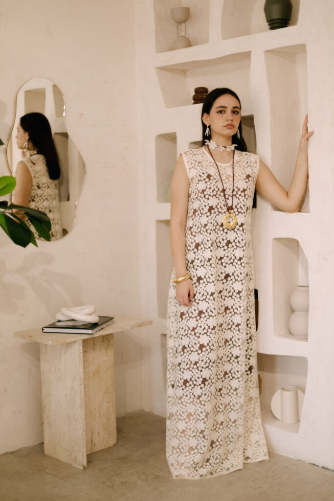“Ruhna viste esos matices”, sostiene la diseñadora, al explicar cómo cada prenda refleja distintas facetas de la mujer contemporánea: libre, romántica, audaz y sensible. La colección equilibra fuerza y sutileza, con piezas pensadas para acompañar a la mujer tanto de día como de noche.
