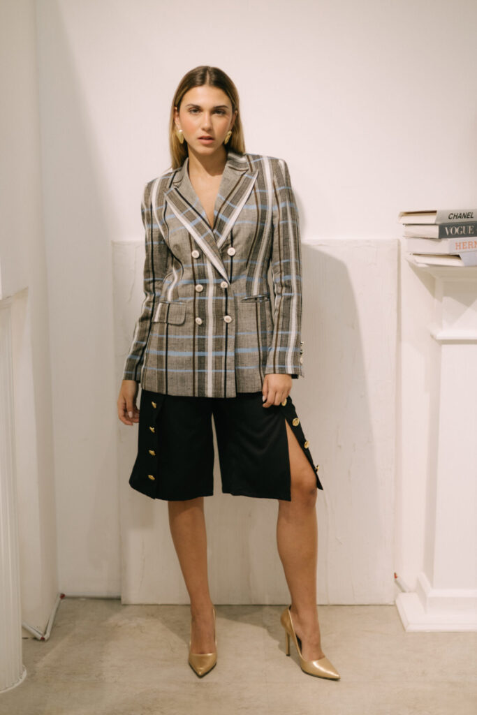La versatilidad es clave: un kimono de seda italiana puede convivir con trajes de cuadros azules o negros de botones dorados, brindando libertad a la hora de crear combinaciones. Adaptada al clima tropical venezolano, pero con proyección global, “Ruhna” reafirma a Nathalia Forkin como una voz sólida del diseño contemporáneo hecho con propósito.