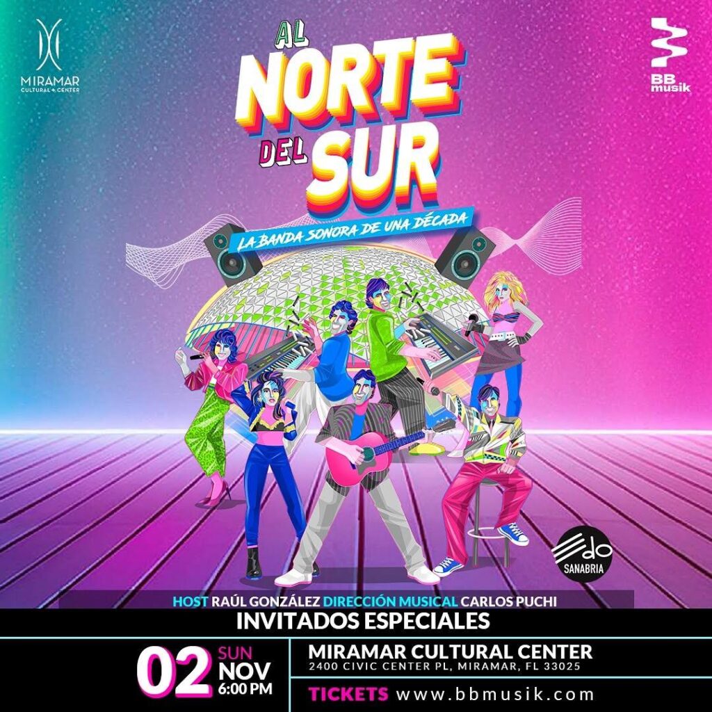 El próximo domingo 2 de noviembre a las 6:00 p.m., el Miramar Cultural Center se convertirá en el punto de encuentro para los amantes del pop venezolano con la llegada de “Al Norte del Sur – La Experiencia En Vivo”. Este espectáculo promete transportar al público a los años 80, una década dorada para la música hecha en Venezuela, a través de un viaje lleno de ritmo, nostalgia y emoción colectiva.