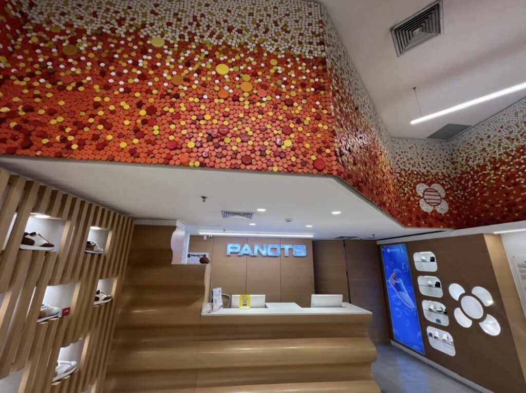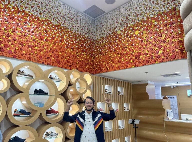 Panots (@panotsvzla), marca de calzado de origen barcelonés con presencia internacional, presentó en su tienda del Sambil Chacao una colaboración artística sin precedentes junto al artista venezolano Óscar Olivares. Se trata de “Trencadís Urbano: 33.000 Fragmentos de Futuro”, el mural de tapas recicladas más grande del mundo instalado dentro de un espacio comercial.