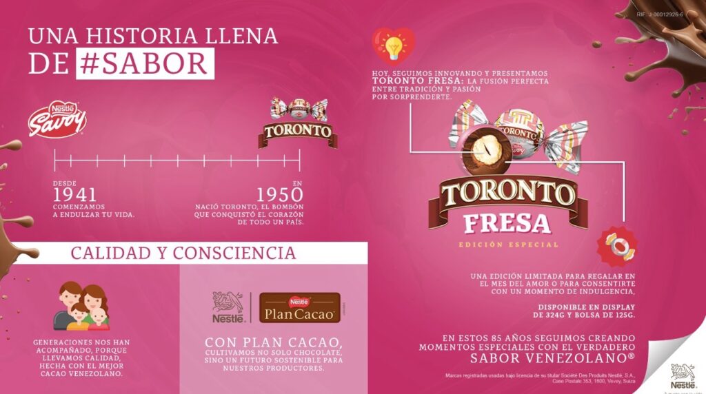 SAVOY® de Nestlé® inicia el 2026 con un dulce motivo de celebración. La marca, símbolo de tradición y sabor para los venezolanos, conmemora su 85° aniversario presentando una edición especial que promete conquistar corazones: el nuevo TORONTO® Fresa.