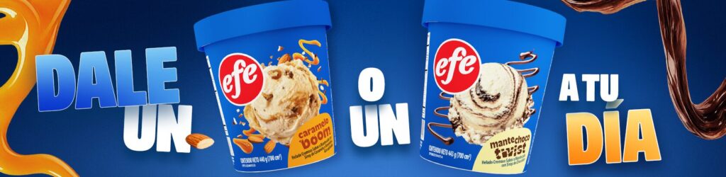 Desde la marca, destacan que este lanzamiento representa un paso más en su evolución dentro del mercado. “Con estas presentaciones, Efe evoluciona su portafolio poniéndole un boom o twist a tu día y así seguir acompañando todos los momentos entre familia y amigos, para conectar con nuevas generaciones que disfrutan probar sabores diferentes, en empaques llamativos que destacan en las neveras de helados del país.”, comentó Karen Baloira, gerente de Marca.