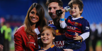 El delantero en el F. C. Barcelona posó junto a su familia para anunciar la llegada de un nuevo miembro a su familia