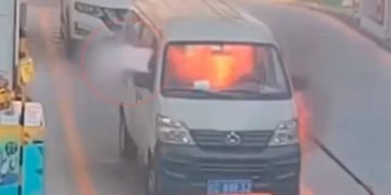 Un terrible accidente ocurrió en una bomba de gasolina en China luego de que un vehículo se incendiara en segundos