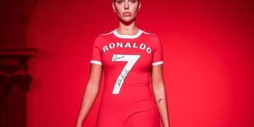 Georgina Rodríguez sorprendió desfilando en la Semana de la Moda de París con un diseño inspirado en Cristiano Ronaldo que llevaba su dorsal estampado