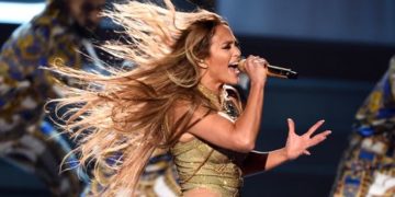 Sin perder ni un paso Jennifer Lopez se levantó elegantemente y continuó cantando