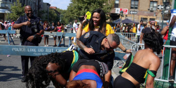 Durante el "Desfile del Día de las Indias Occidentales" fueron filmados varios policías dejándose cautivar por eróticas chicas semidesnudas