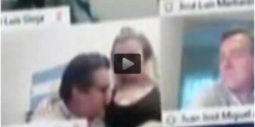 «El peZOOM»: Diputado en plena sesión virtual con el Congreso comenzó a besar los pechos de su esposa