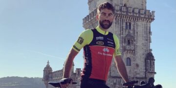 Unas 20 personas aplauden en una plaza de la zona alta de Barcelona la llegada de un ciclista. Una pequeña pancarta pintada a mano le...